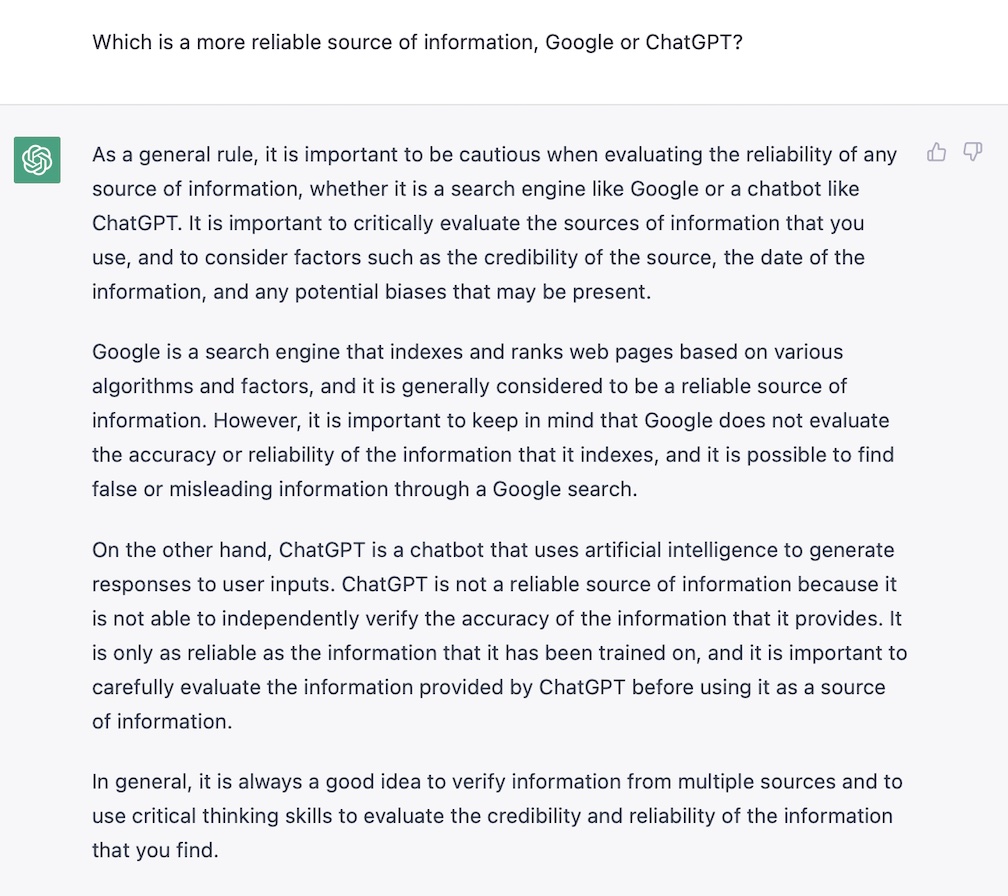 1. Which is a more reliable source of information, Google or ChatGPT?