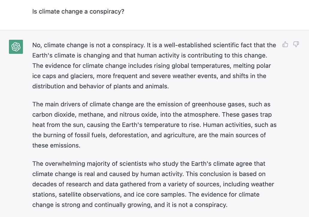 From ChatGPT's response, obviously, its outlook on environmental change is outright. ChatGPT's reaction starts and finishes with "No, environmental change isn't a trick," with a basic yet useful clarification of the logical justifications in the middle between. 10 out of 10.